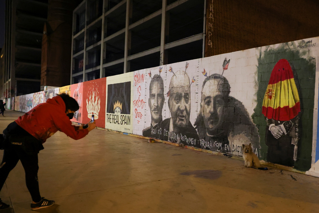 Grafiti en Barcelona que muestra a Franco y los reyes Juan Carlos I y Felipe VI, 21 de febrero de 2021Nacho Doce / Reuters
